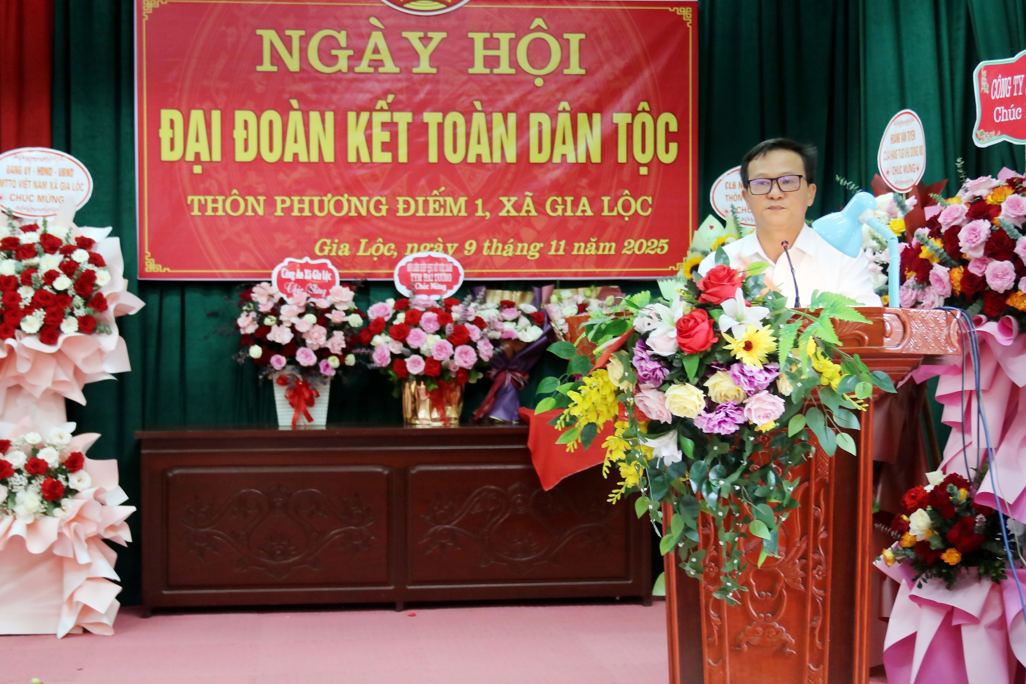 Tại ngày Hội, đồng chí Phó Bí thư thường trực Đảng uỷ ghi nhận, biểu dương những thành tựu mà nhân dân thôn Phương Điếm 1 đã đạt được. Đồng chí hi vọng rằng, thôn Phương Điếm 1 sẽ cùng xã Gia Lộc tiếp tục phát huy những kết quả tích cực, đẩy mạnh các hoạt động đoàn kết tòan dân, xây dựng quê hương ngày càng vững mạnh.