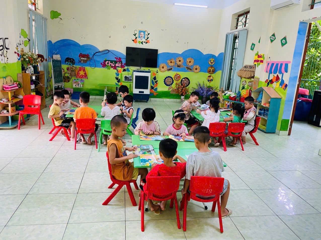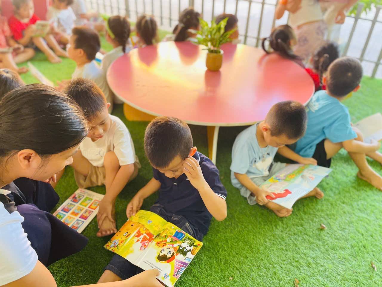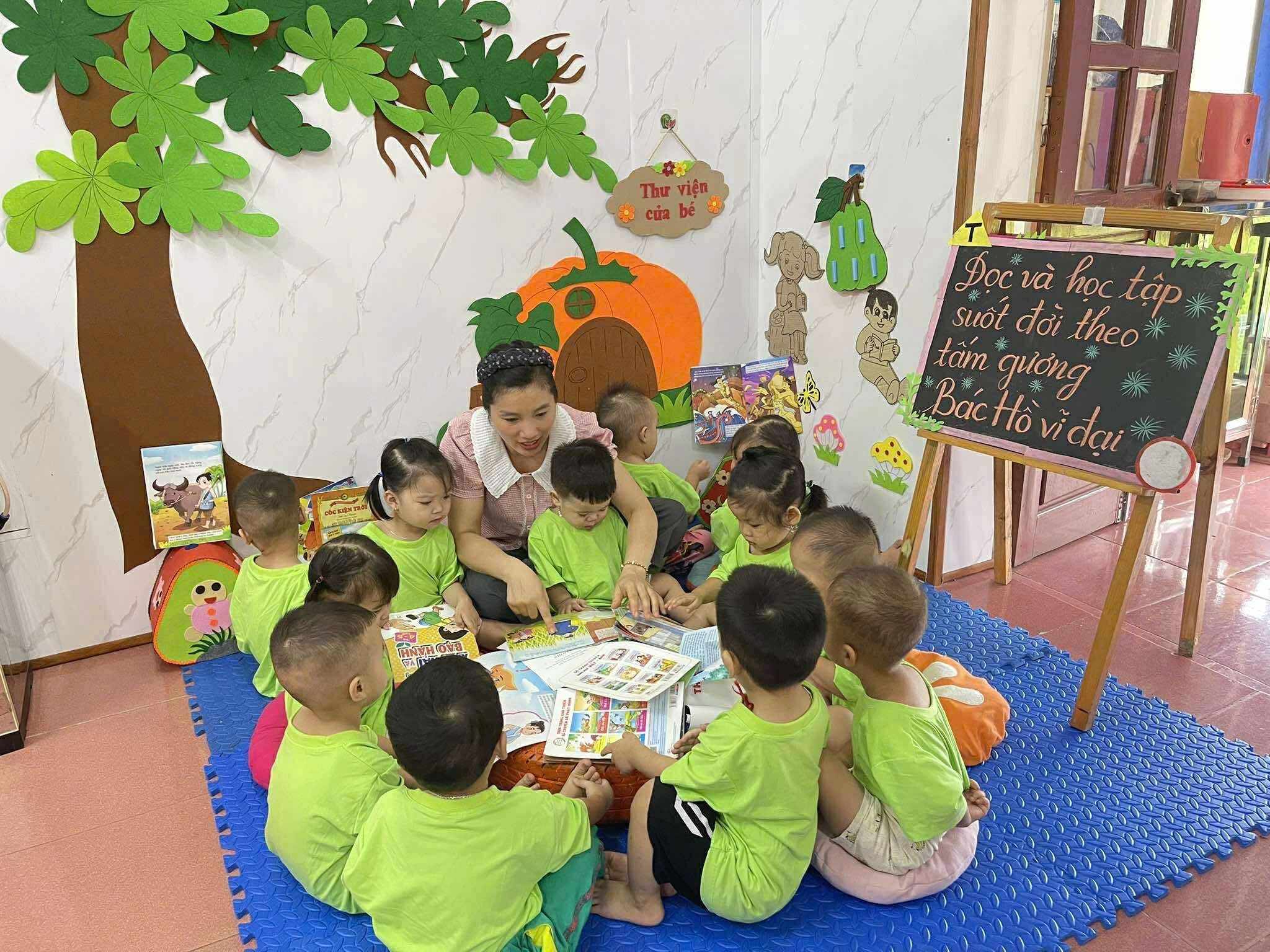 Xây dựng “Góc thư viện thân thiện” trong lớp học, khuyến khích trẻ khám phá tri thức qua tranh ảnh và truyện thiếu nhi.