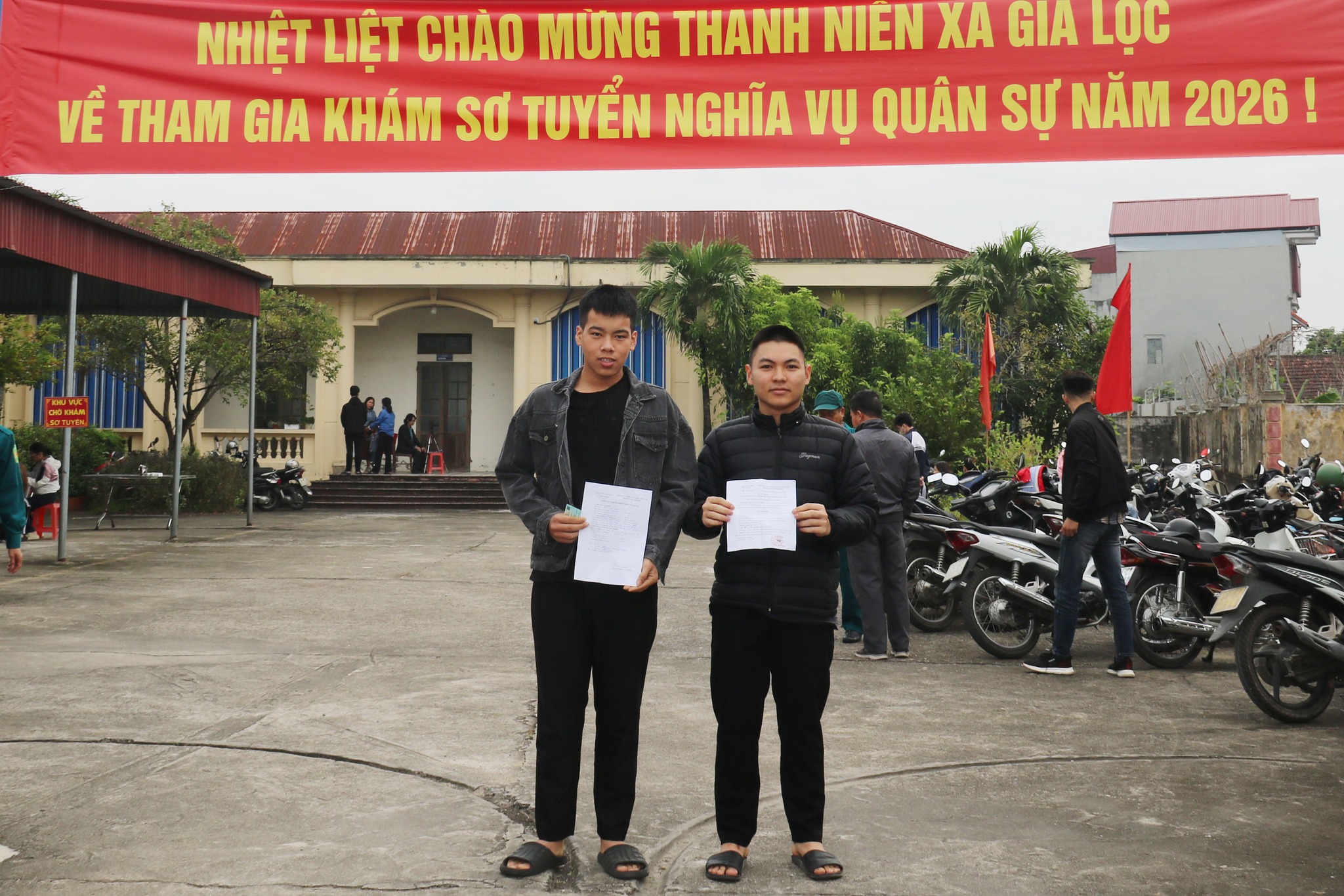 Trong sáng ngày 26/10, Hội đồng NVQS xã Gia Lộc tổ chức khám sơ tuyển nghĩa vụ cho các nam thanh niên được gọi nhập ngũ. Hai em Tăng Văn Hiếu và Phạm Quang Vinh ở thôn Phúc Tân đã vô cùng phấn khởi và háo hức tham gia buổi khám sơ tuyển lần này. Là hai học sinh vừa tốt nghiệp THPT, Hiếu và Vinh đã có ước mong được rèn luyện và phấn đấu trong môi trường quân đội, vì vậy, hai em đã cùng nhau viết đơn xin nhập ngũ. Hai em đều mong rằng bản thân có thể cống hiến thanh xuân cho Tổ quốc.