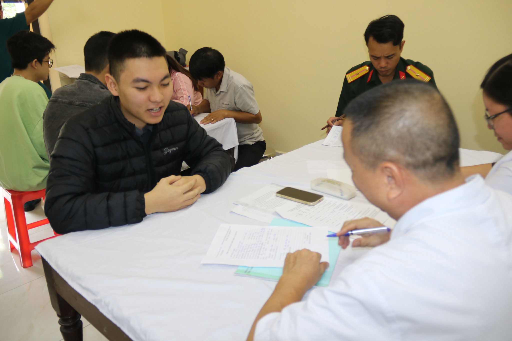 Hiện tại, Hội đồng khám sức khỏe NVQS huyện đang tiến hành khám sức khỏe, các bước, các khâu được thực hiện chặt chẽ để sàng lọc, lựa chọn thanh niên đủ tiêu chuẩn tham gia NVQS năm 2026 và dự nguồn cho các năm tiếp theo. Tự nguyện viết đơn tham gia NVQS là hành động đẹp của các bạn trẻ. Qua đó thể hiện nhiệt huyết của tuổi trẻ, nhận thức về trách nhiệm của thanh niên đối với cộng đồng xã hội.