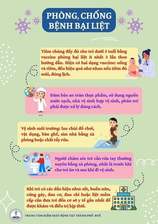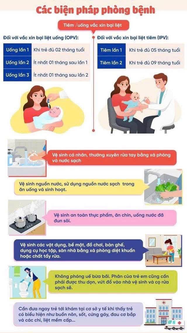 Người dân cần thực hiện tốt các biện pháp phòng bệnh như: giữ gìn vệ sinh cá nhân, ăn chín uống sôi, sử dụng nước sạch, xử lý chất thải hợp vệ sinh và đặc biệt là đưa trẻ đi tiêm chủng đầy đủ, đúng lịch. Chủ động phối hợp với các cơ quan chức năng trong công tác phòng, chống dịch bệnh bại liệt, góp phần bảo vệ sức khỏe cộng đồng và giữ vững thành quả thanh toán bệnh bại liệt trên địa bàn.