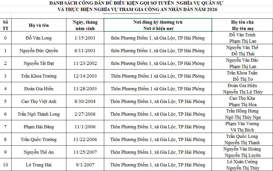 Dưới đây là danh sách các nam công dân được gọi đi khám tuyển nghĩa vụ năm 2026.
