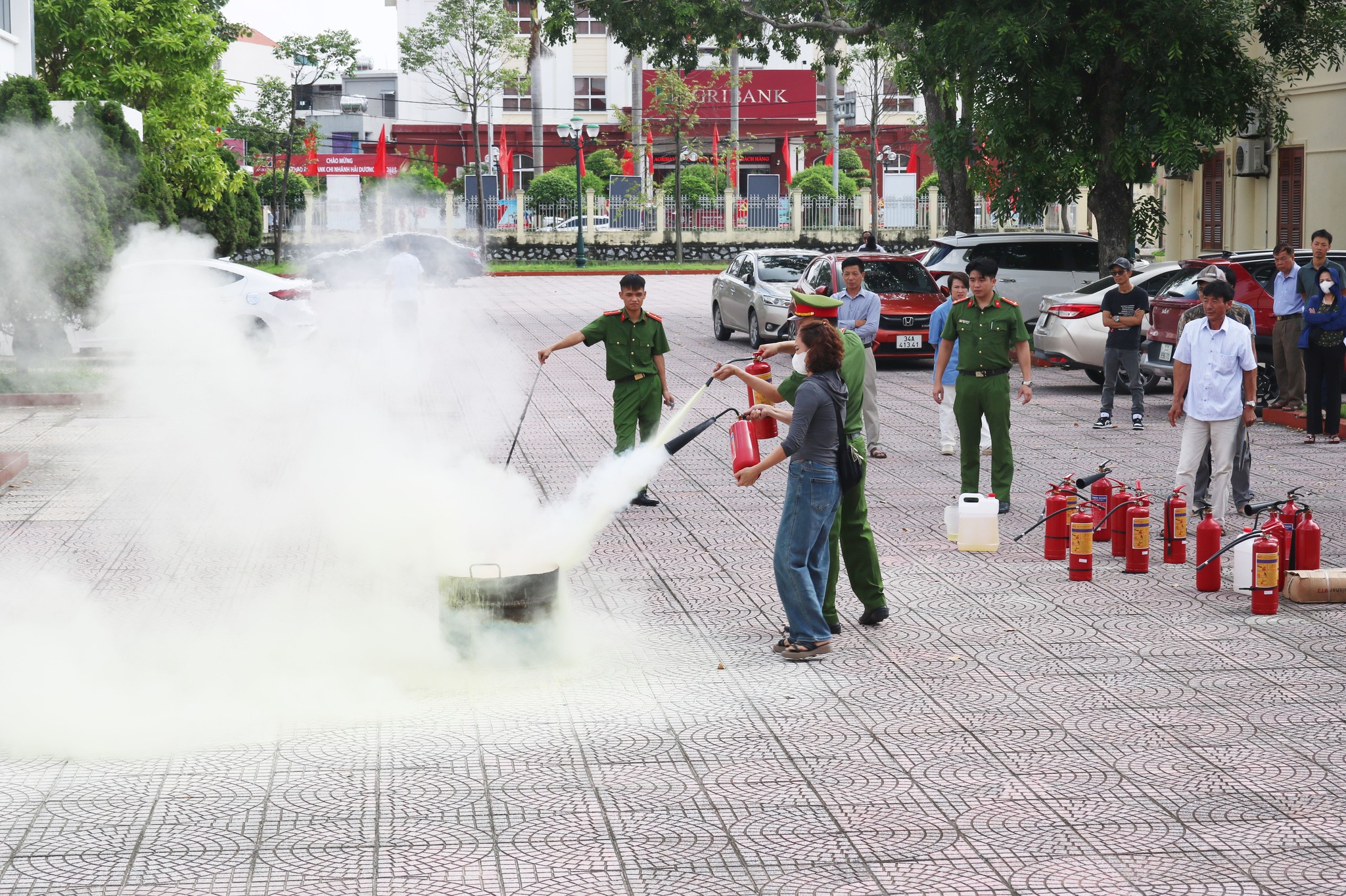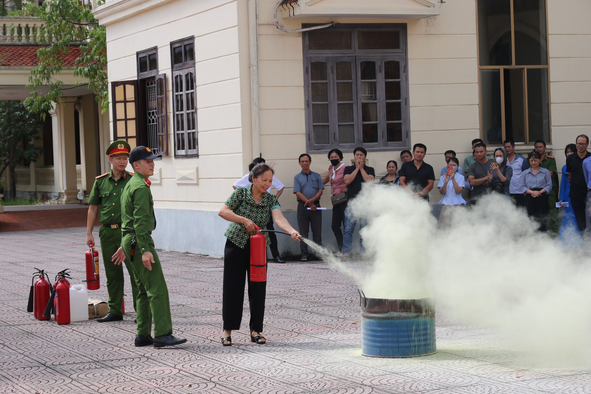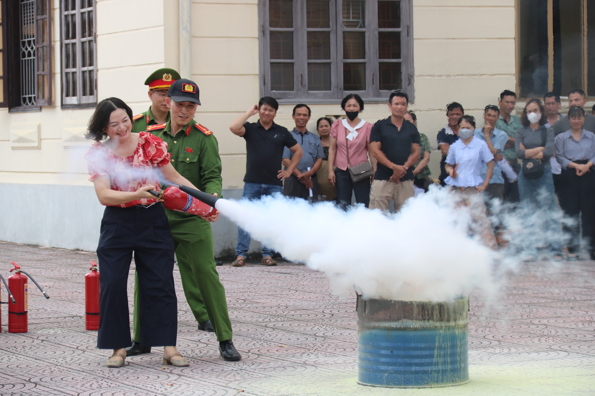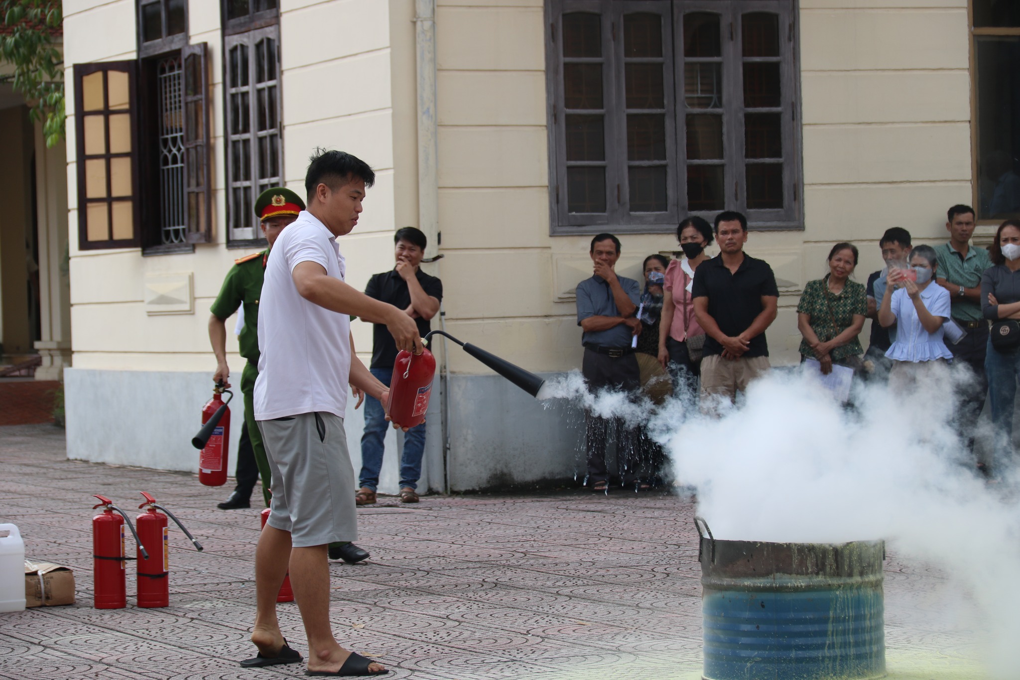 Sau phần lý thuyết, người dân đã được thực hiện phần thực hành Phòng cháy chữa cháy ngay tại hiện trường tổ chức tuyên truyền. Cụ thể là được hướng dẫn thao tác dùng bình chữa cháy (bình bột MFZ4 và bình khí CO2) để dập tắt đám cháy nhỏ.