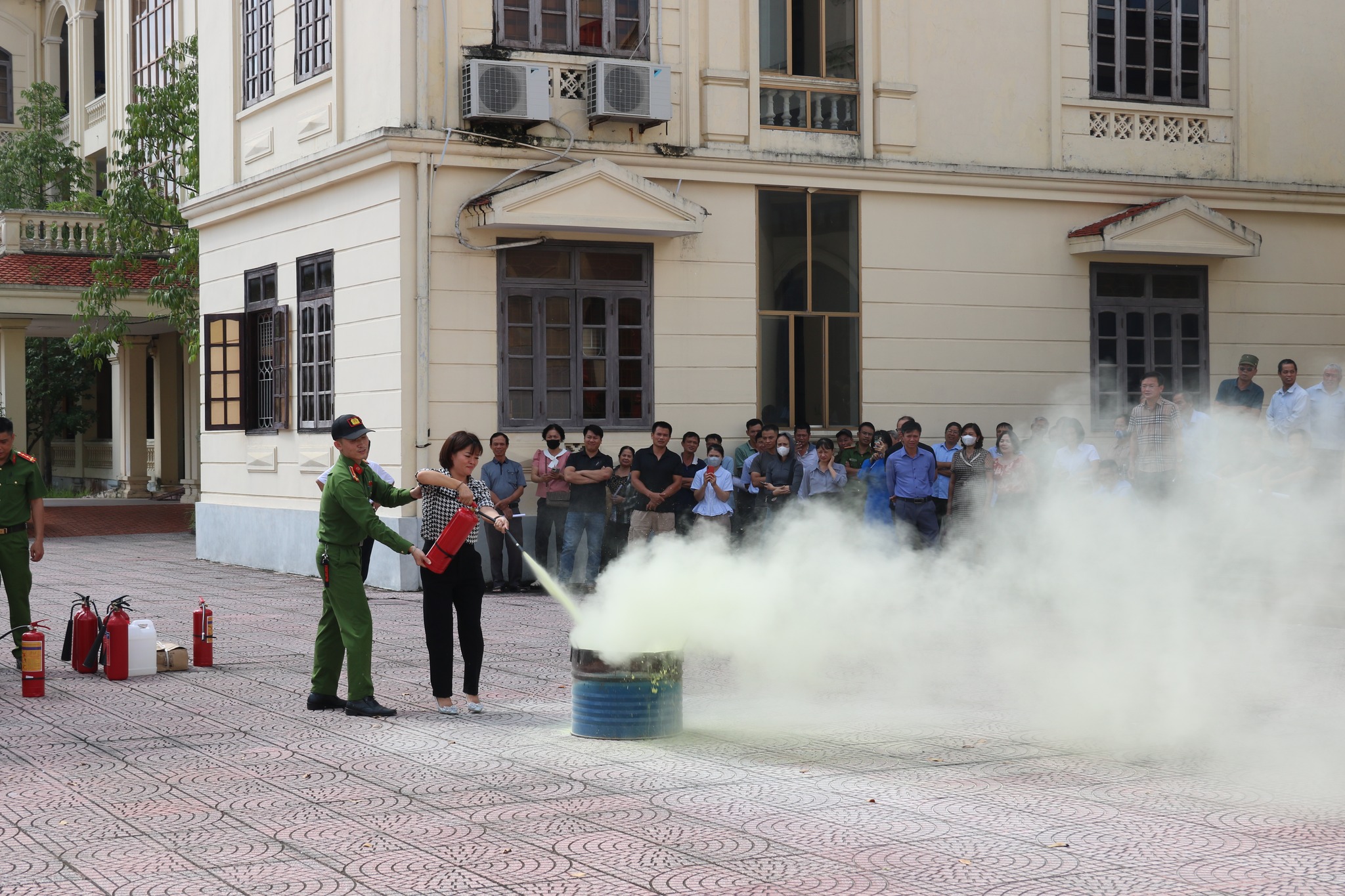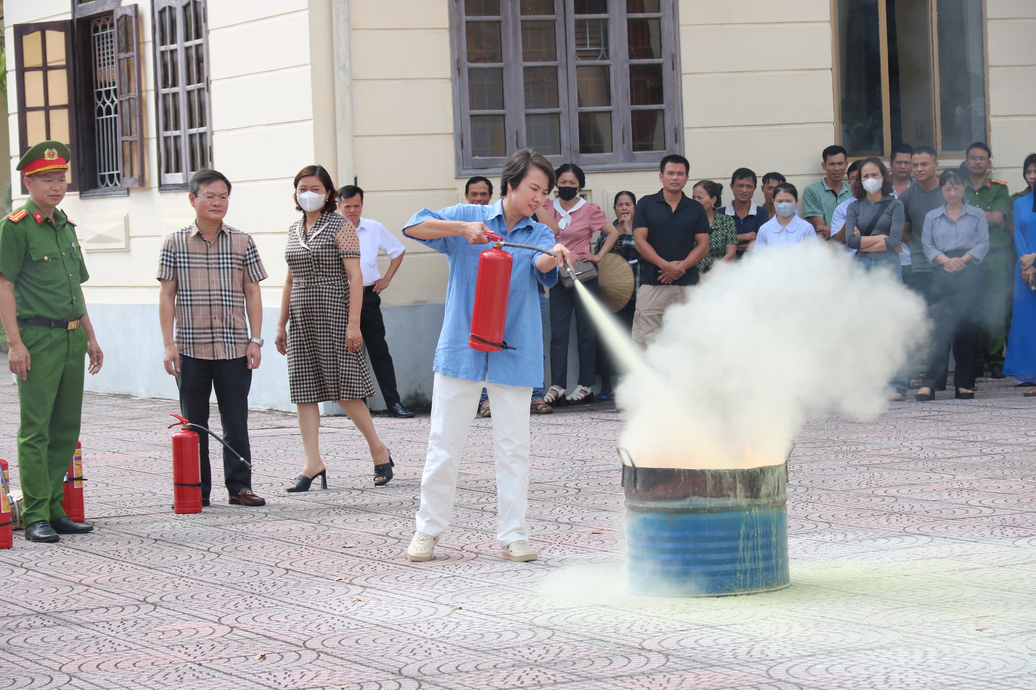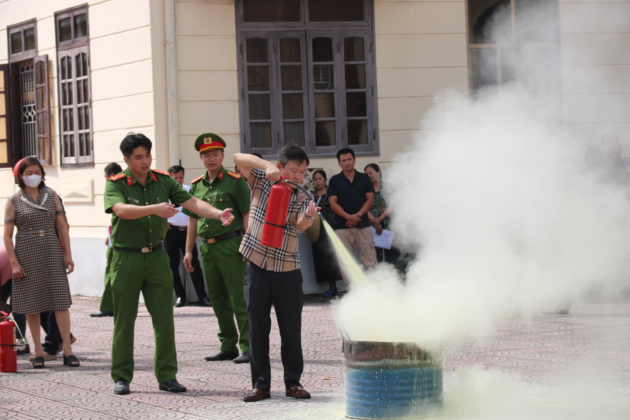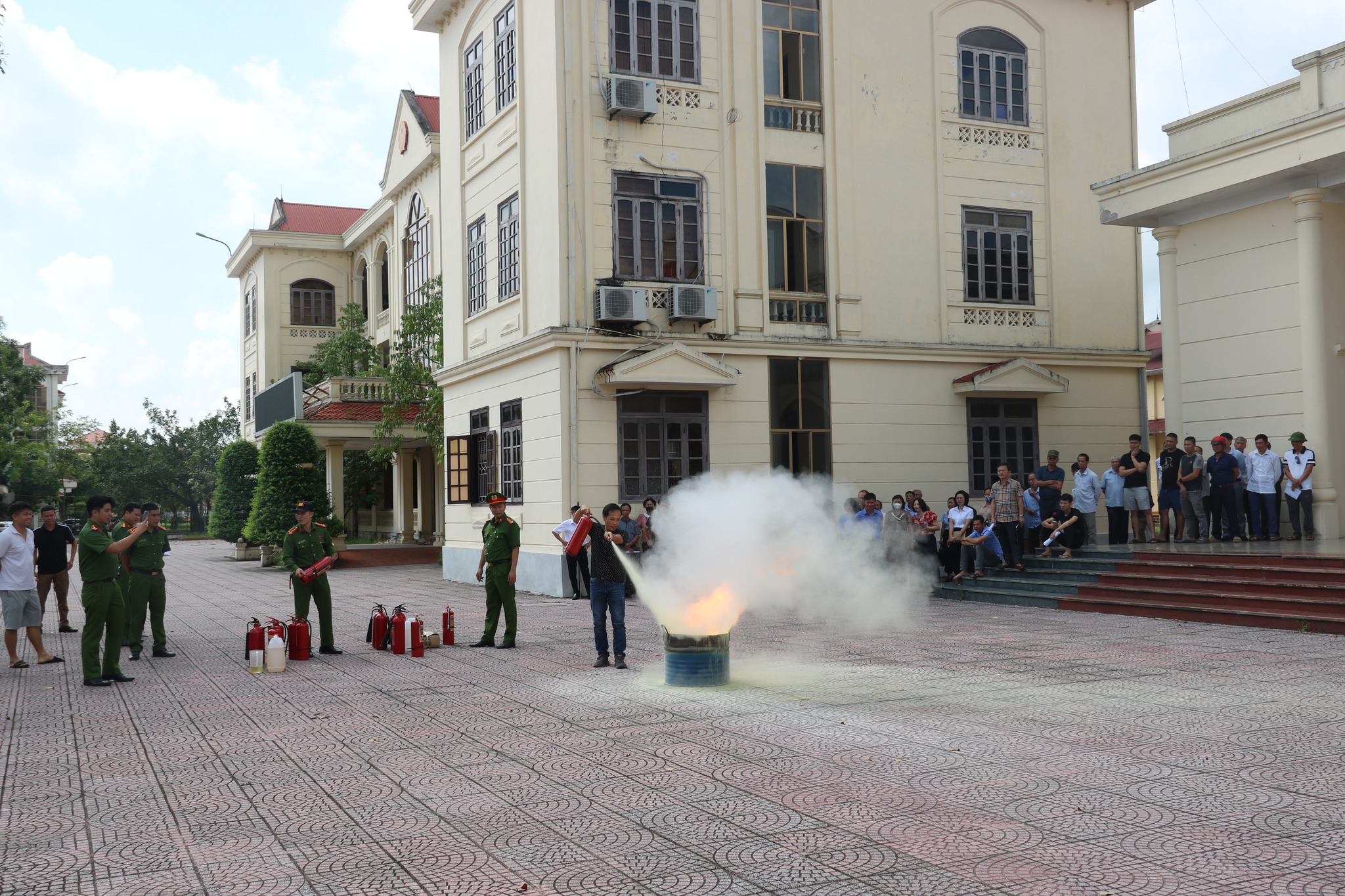 Sau phần lý thuyết, người dân đã được thực hiện phần thực hành Phòng cháy chữa cháy ngay tại hiện trường tổ chức tuyên truyền. Cụ thể là được hướng dẫn thao tác dùng bình chữa cháy (bình bột MFZ4 và bình khí CO2) để dập tắt đám cháy nhỏ.