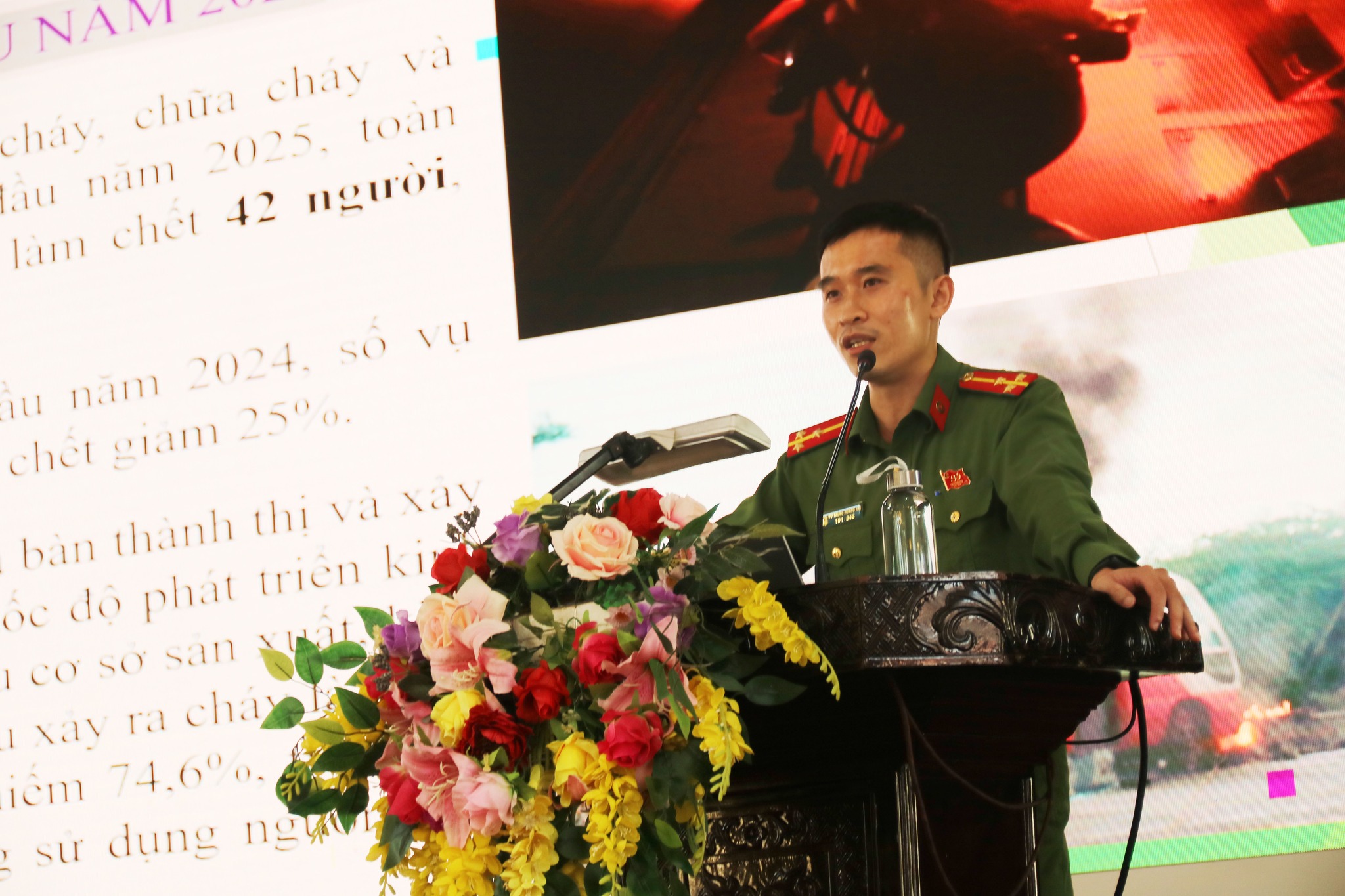 Trong buổi tập huấn, các đại biểu đã được công an xã tuyên truyền các kiến thức, kỹ năng về PCCC và thoát nạn đối với từng loại hình nhà ở và hộ gia đình, hộ kinh doanh, nhà trọ, cho thuê; Giới thiệu các văn bản pháp luật mới nhất về Phòng cháy chữa cháy và Cứu nạn cứu hộ; trách nhiệm của cơ quan, tổ chức và người dân trong công tác Phòng cháy chữa cháy và Cứu nạn cứu hộ; Phổ biến kiến thức cơ bản về nguy cơ cháy nổ, các biện pháp phòng ngừa, kỹ thuật chữa cháy ban đầu và tổ chức lực lượng chữa cháy tại chỗ, hướng dẫn xây dựng và thực tập phương án chữa cháy tại cơ sở cũng như duy trì kiều kiện hoạt động các thiết bị Phòng cháy chữa cháy đã được trang bị.