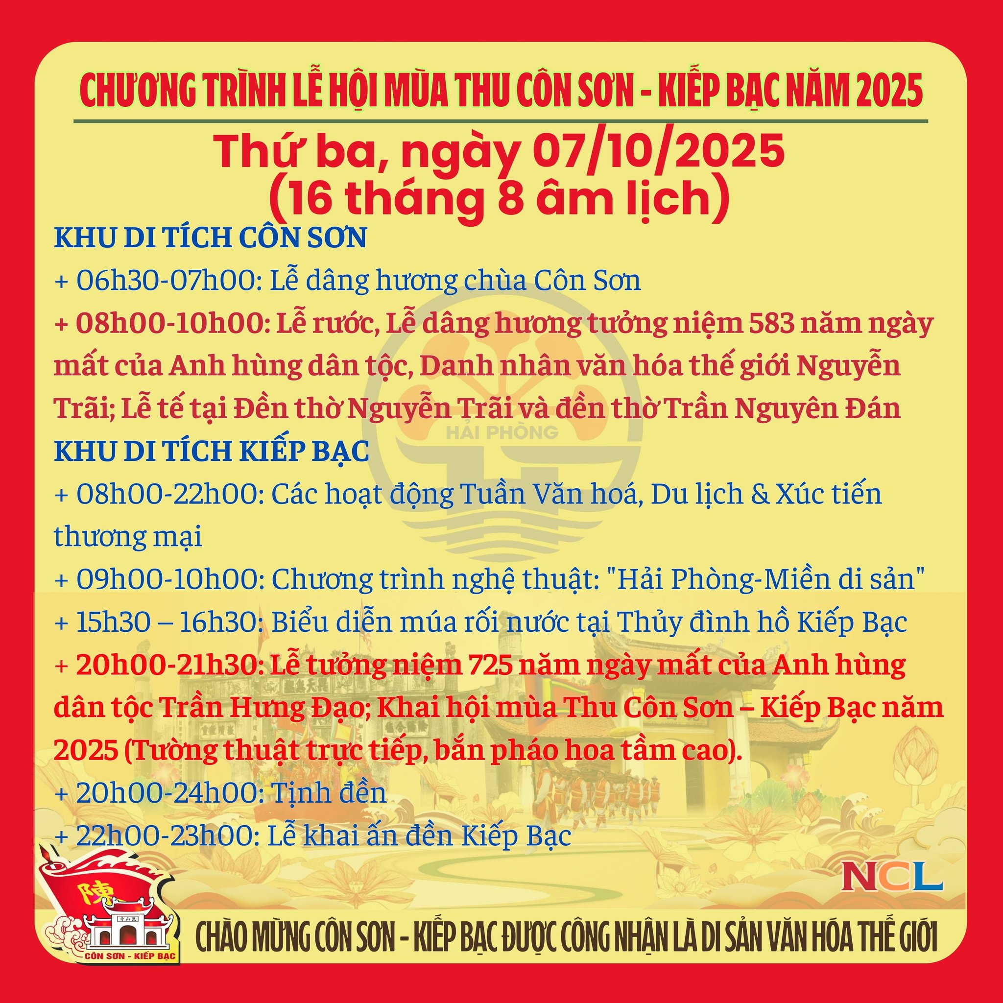 CHƯƠNG TRÌNH LỄ TƯỞNG NIỆM 725 NĂM NGÀY MẤT CỦA ANH HÙNG DÂN TỘC TRẦN HƯNG ĐẠO VÀ KHAI HỘI MÙA THU CÔN SƠN - KIẾP BẠC 2025