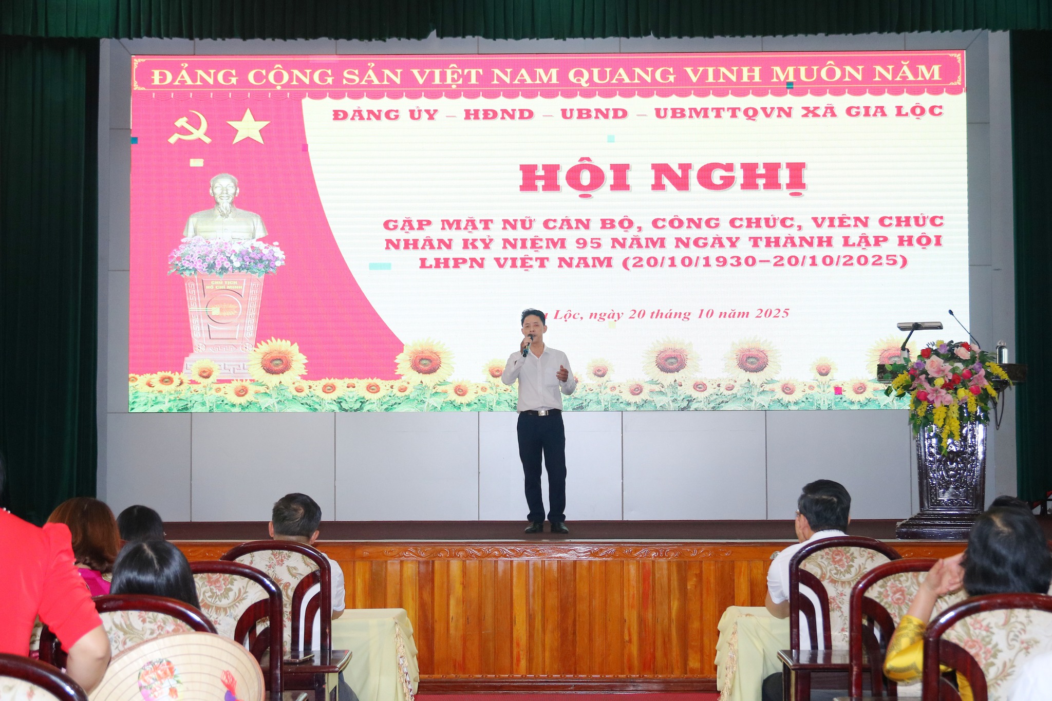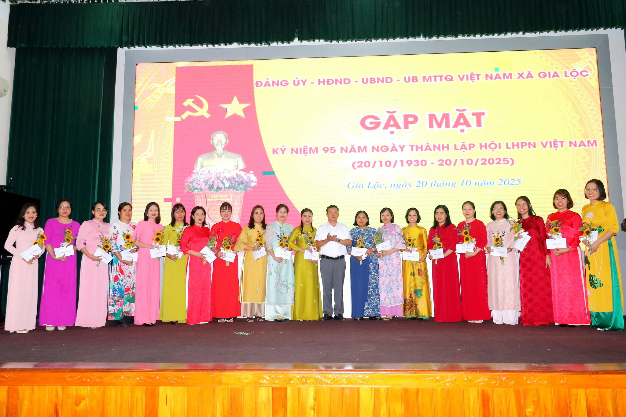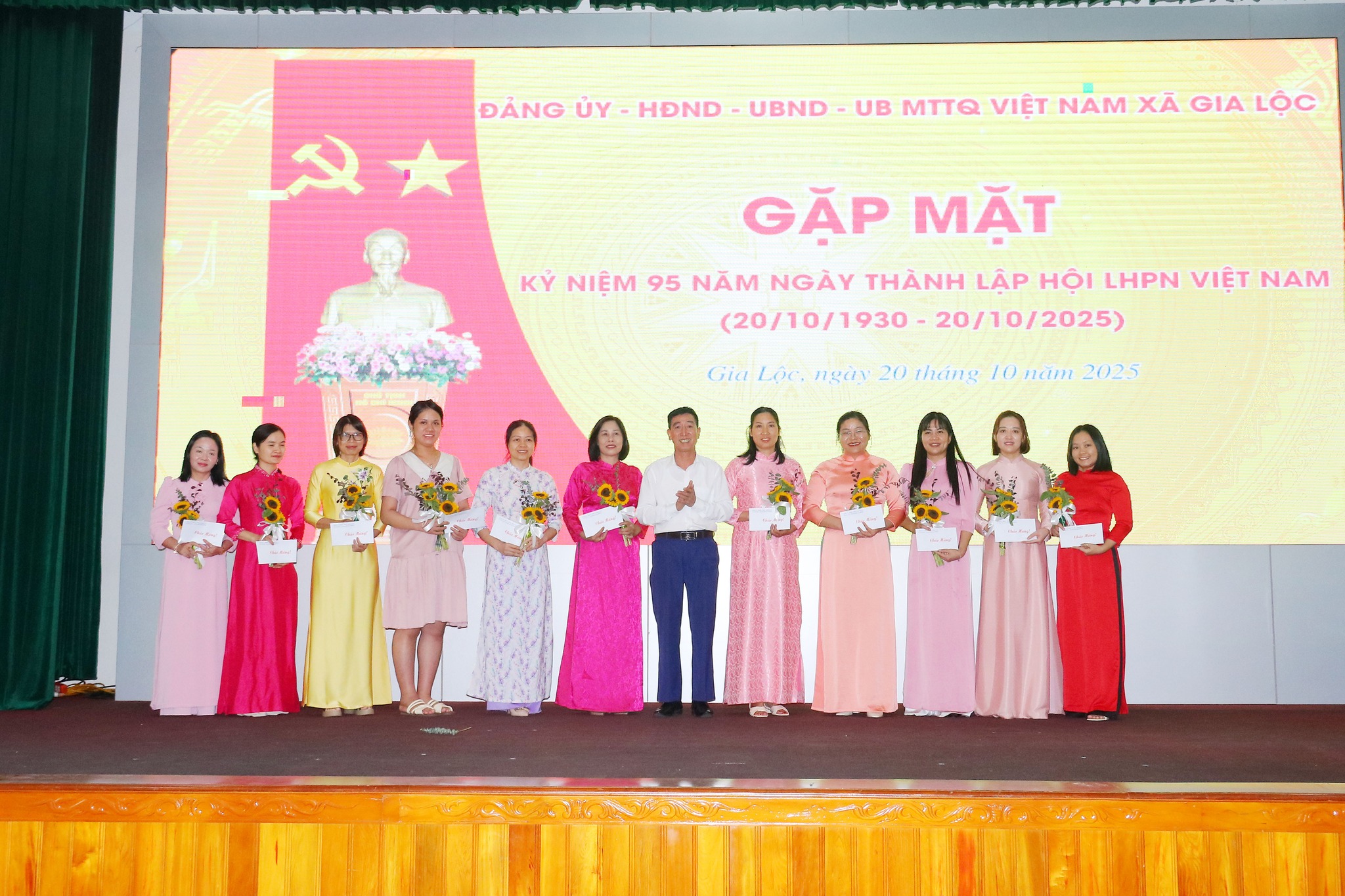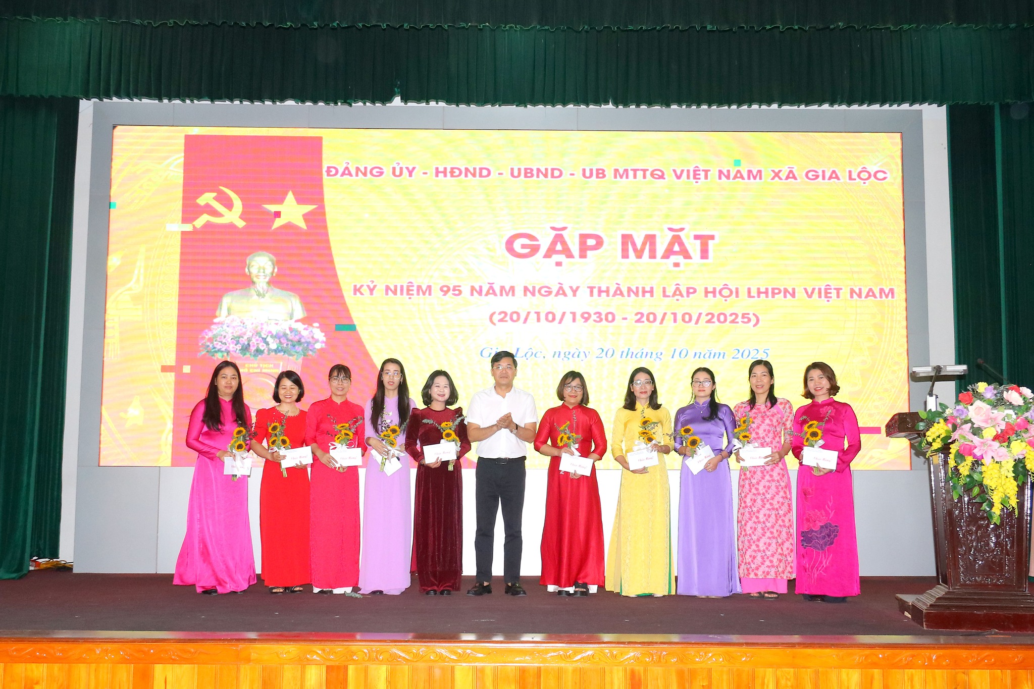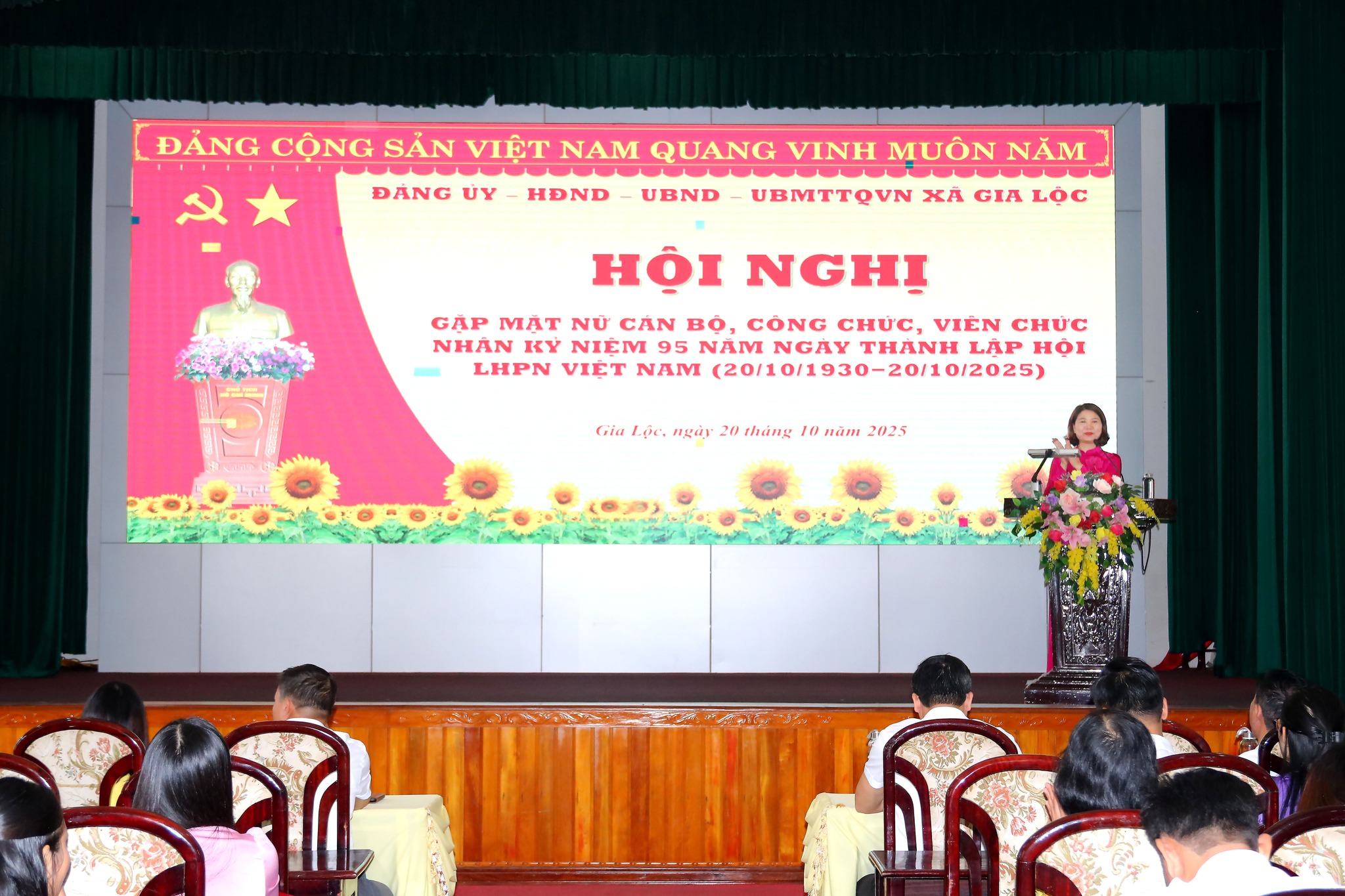 Sáng ngày 20/10, Đảng uỷ - HĐND – UBND – Uỷ ban MTTQ Việt Nam xã Gia Lộc đã tổ chức hội nghị gặp mặt kỷ niệm 95 năm Ngày thành lập Hội LHPN Việt Nam. Tham dự có đồng chí Đặng Xuân Thưởng – Uỷ viên Thành uỷ, Bí thư Đảng uỷ, Chủ tịch HĐND xã, các đồng chí trong Ban Thường trực Đảng uỷ, Ban Thường vụ Đảng uỷ, Lãnh đạo UBND xã, Ban chấp hành Đảng bộ xã. Cùng toàn thể cán bộ, công chức, viên chức, người lao động tại các cơ quan Đảng uỷ - HĐND – UBND – Uỷ ban MTTQ Việt Nam xã.