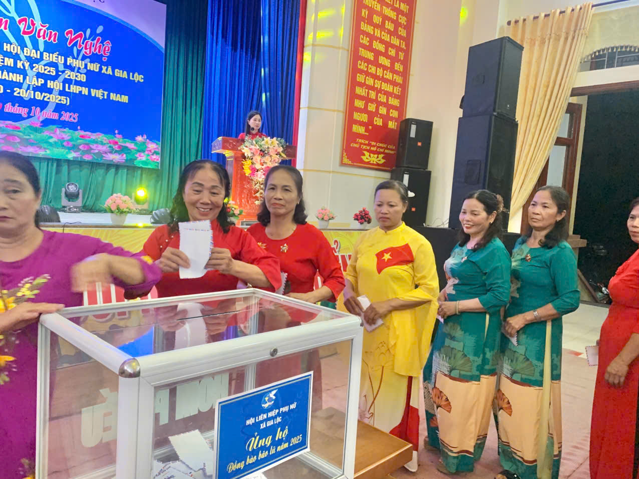 Tối ngày 19/10, tại Hội trường UBND xã Gia Khánh cũ, Hội LHPN xã Gia Lộc đã tổ chức các hoạt động chào mừng kỉ niệm 95 năm ngày thành lập Hội LHPN Việt Nam (20/10/1930-20/10/2025) cho các hội viên phụ nữ các thôn Bình Đê, Gia Bùi, Cao Lý, Cao Dương, Thành Lập, Luỹ Dương, Đồng Tâm, Xuân Trình, Cộng Hoà, Tam Lương, Đông Cận, Quán Đào.
