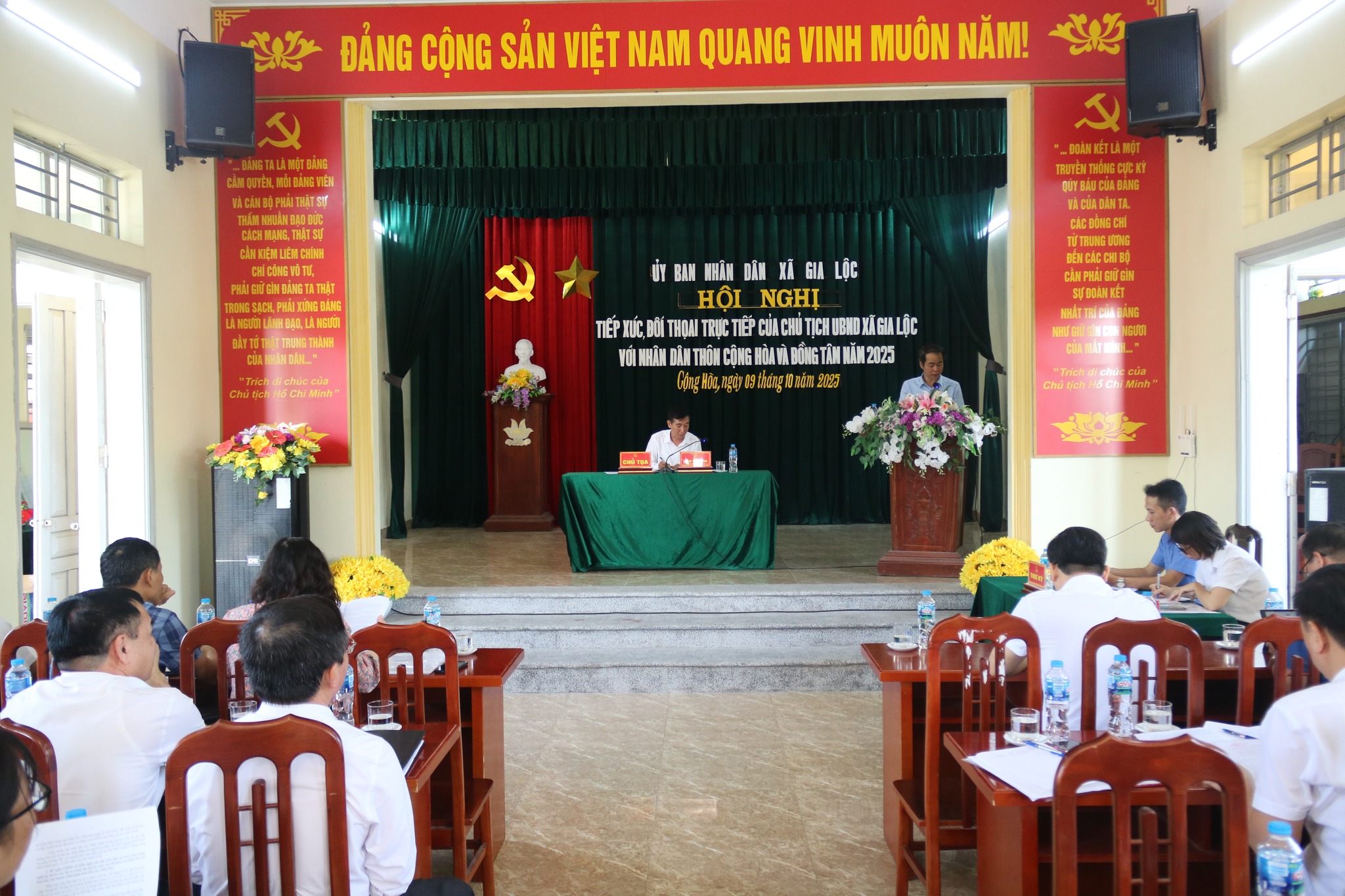 Sáng 9/10, tại nhà văn hoá thôn Cộng Hoà, UBND xã Gia Lộc đã tổ chức Hội nghị tiếp xúc, đối thoại trực tiếp của đồng chí Chủ tịch UBND xã với 80 đại biểu nhân dân thôn Cộng Hoà và Đồng Tâm.